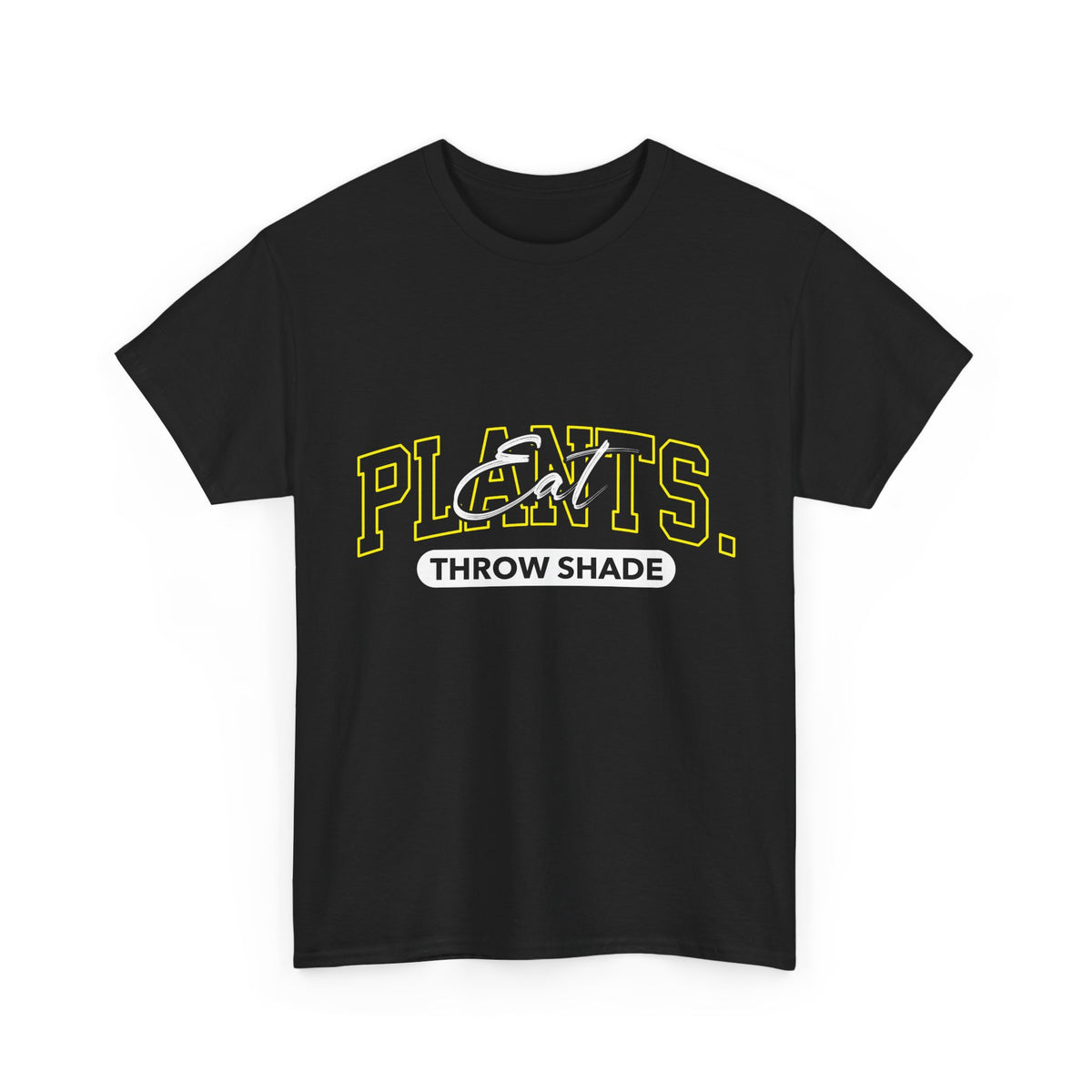 A relaxed, everyday tee that speaks to plant lovers with a wink. This soft, classic-fit shirt wears like a favorite: breathable medium-weight cotton, a neat crew neckline, and a tear-away label for itch-free comfort. The front artwork layers bold collegiate lettering with a hand-drawn plant motif and the playful line “Throw Shade,” mixing vintage athletic vibes with plant-based