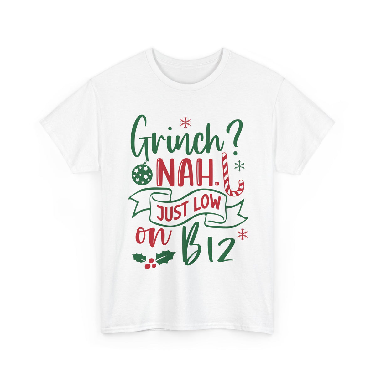 Grinch? Nah Just Low on B12 T-Shirt — Funny Holiday Tee