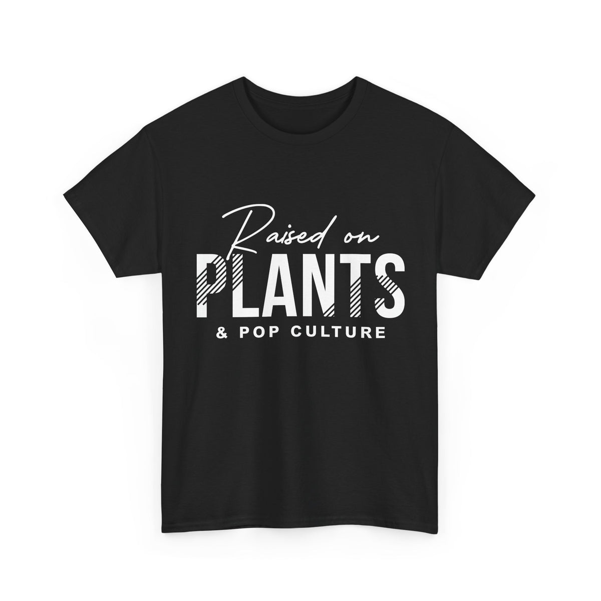 Raised on Plants and Pop Culture Tee- Stripe Design